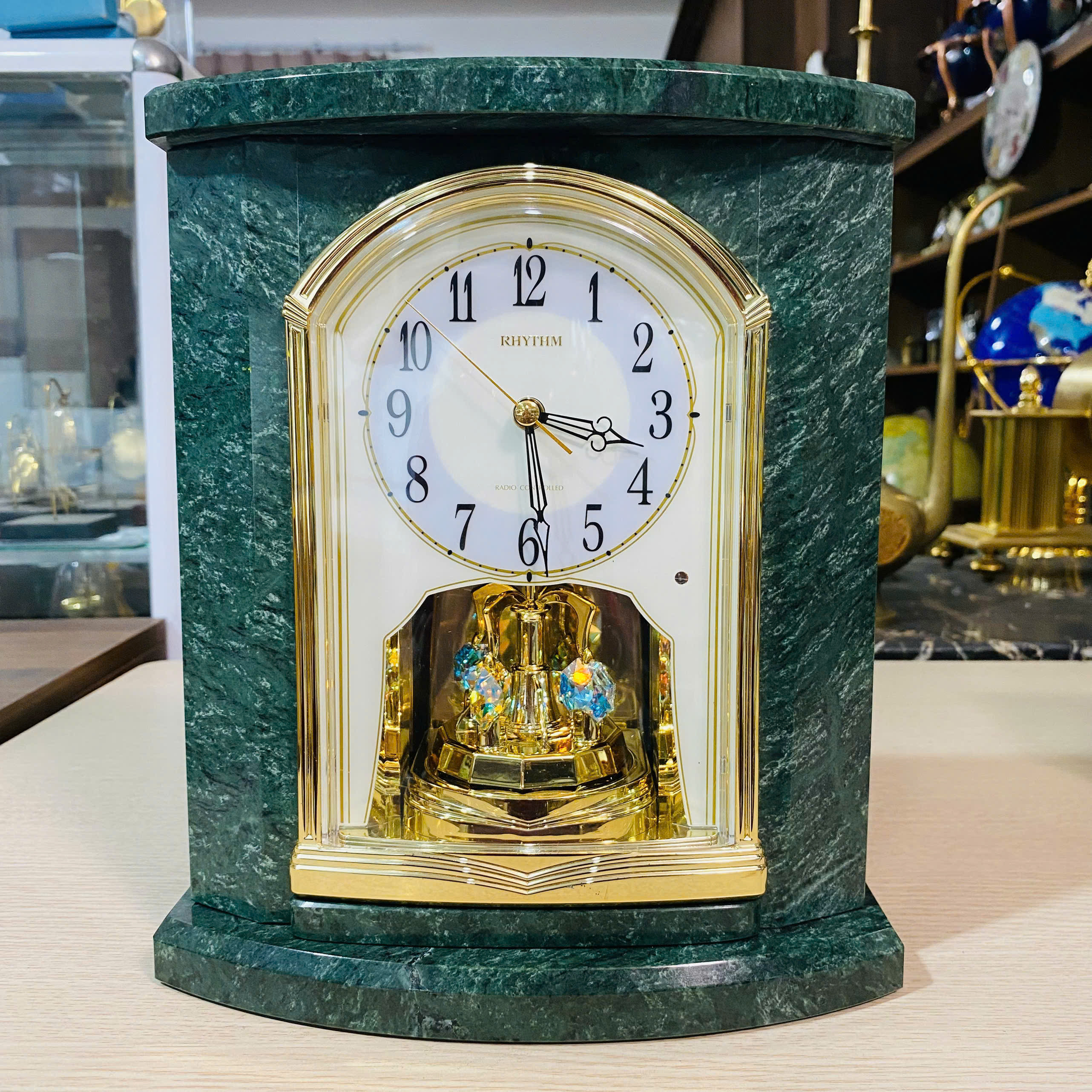 Đồng hồ để bàn Rhythm đá marple napoli xanh