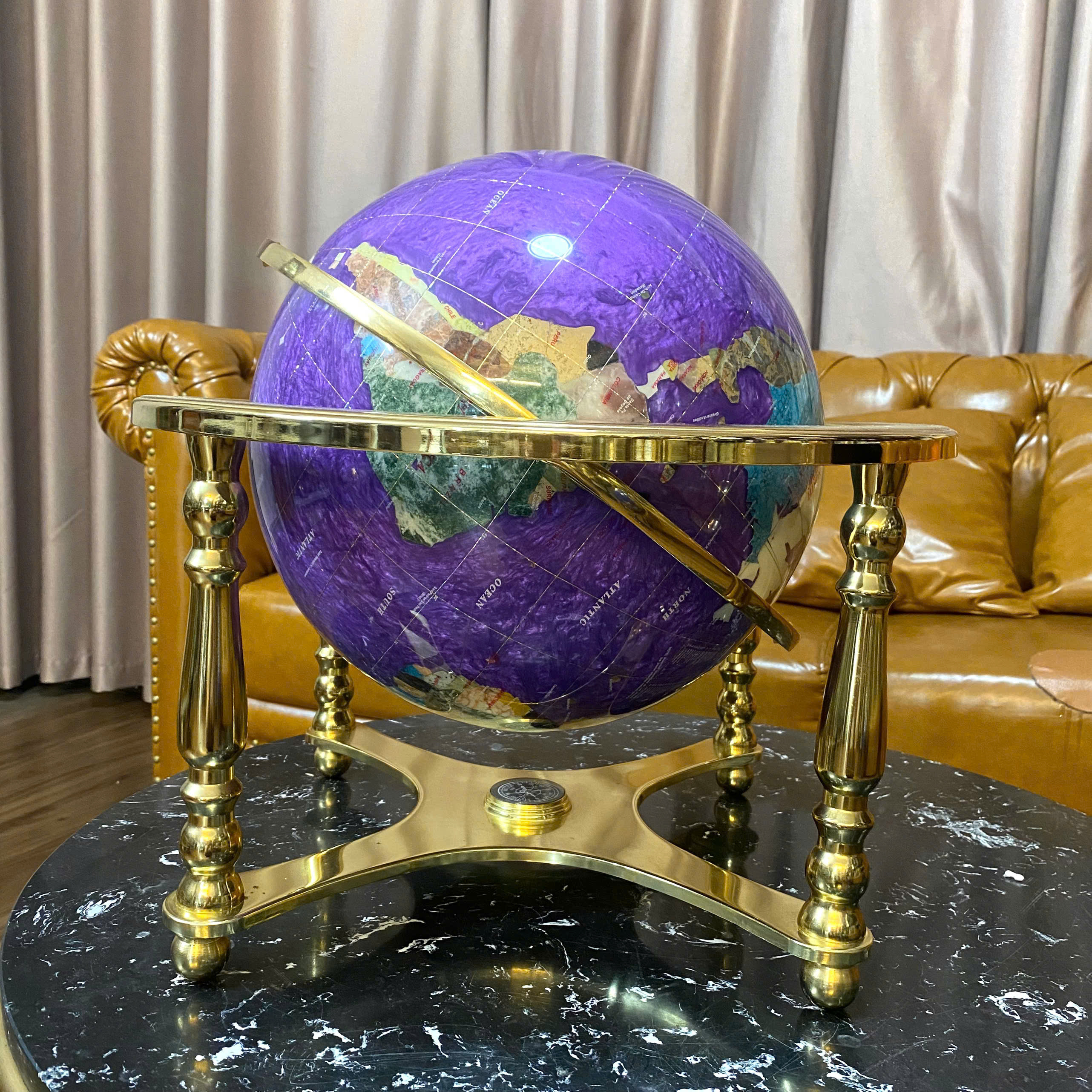 Địa cầu khảm đá màu 3D, tứ trụ size đại đẹp xuất sắc
